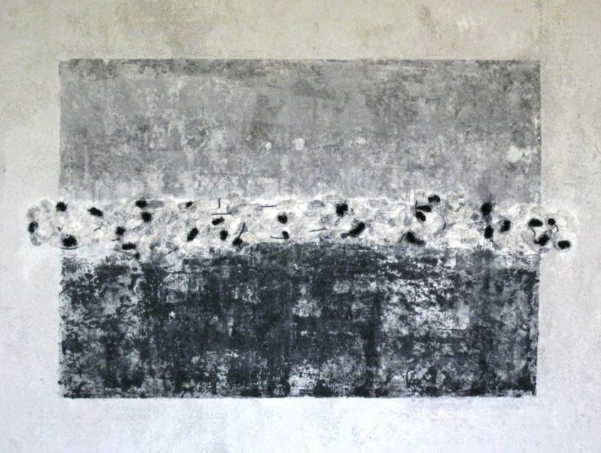 Abstract werk van mixed media met apart relief.