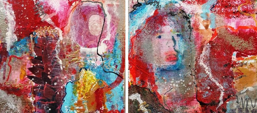 Een globale impressie van het schilderij "Gimmeshelter" 40x20cm.
