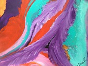 Een schilderij met veel beweging,in acryl uitgevoerd.zeer kleurrijk,met diverse materialen erin verwerkt