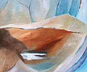 Warm,zomers schilderij.Acryl,met een diepte van wit,met verrassende lijnen.