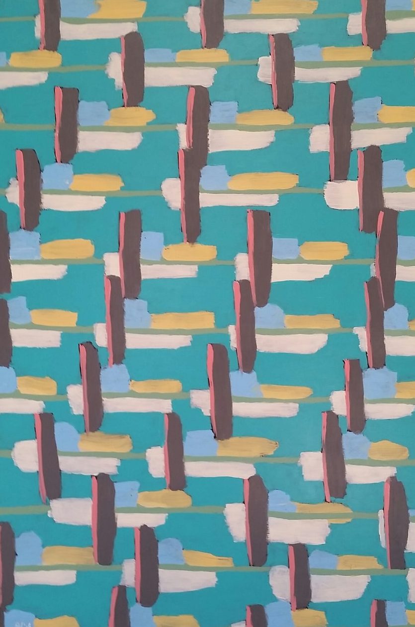 Een globale impressie van het schilderij "Praia (Dancing around the World)" 80x120cm.