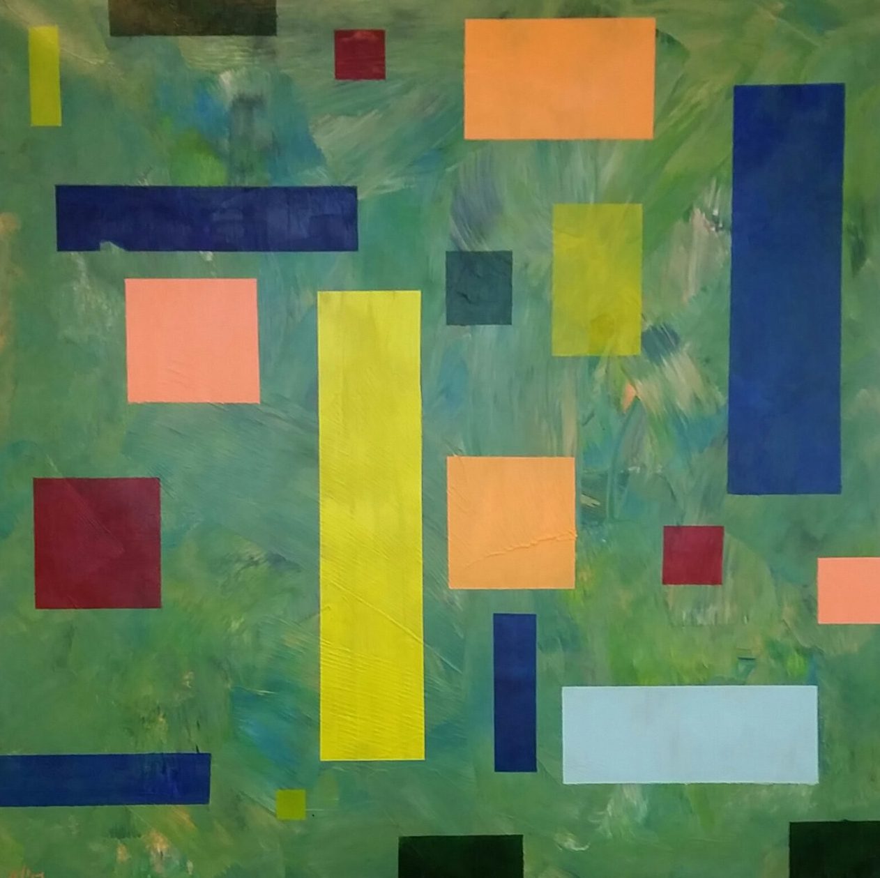 Een globale impressie van het schilderij "Abstract 1 (Stylish)" 90x90cm.
