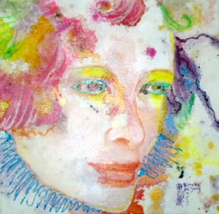 Een globale impressie van het schilderij "Clown" 20x20cm.
