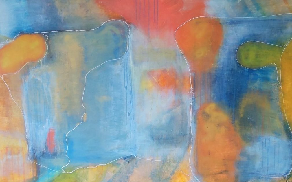 Kleurrijk abstract werk. Dit werk staat gepresenteerd op blz 188 in het Jaarboek voor kunstenaars 2021!