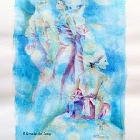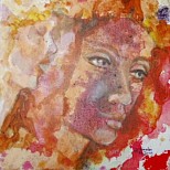 Jacqueline 3, potlood, acryl en bladgoud op zwaar wit papier. Helaas krijg ik de foto niet zo dat het papier wit is.