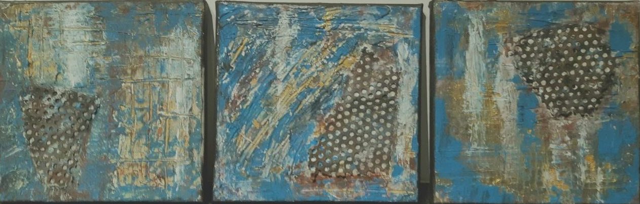 Een globale impressie van het schilderij "Gold en rust" 60x20cm.