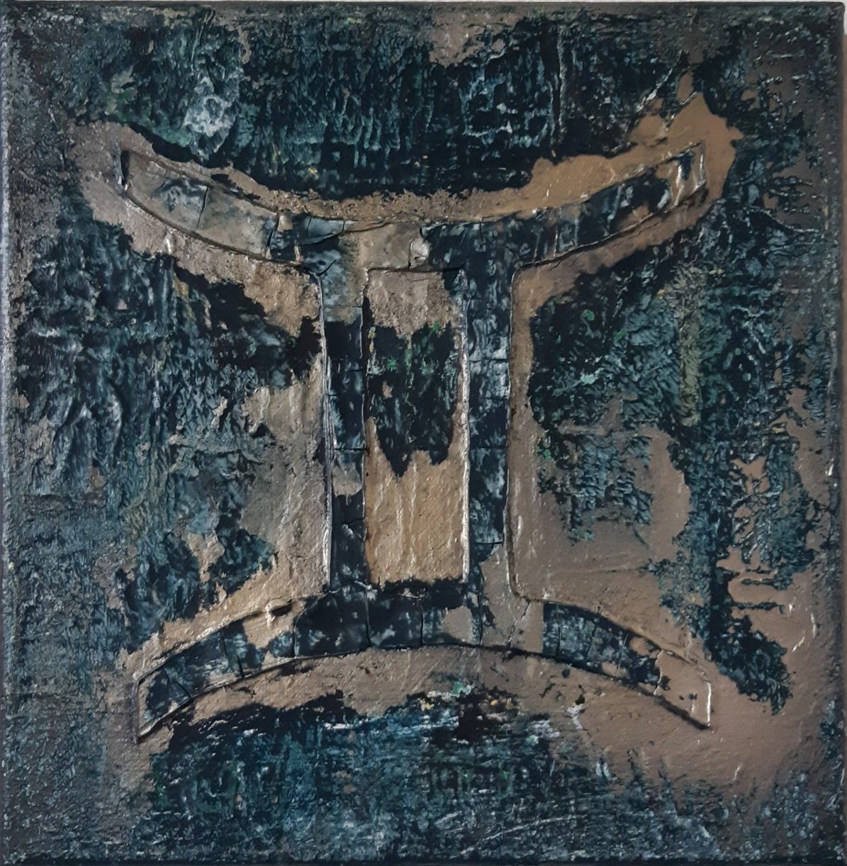 Een globale impressie van het schilderij "Geminis" 20x20cm.