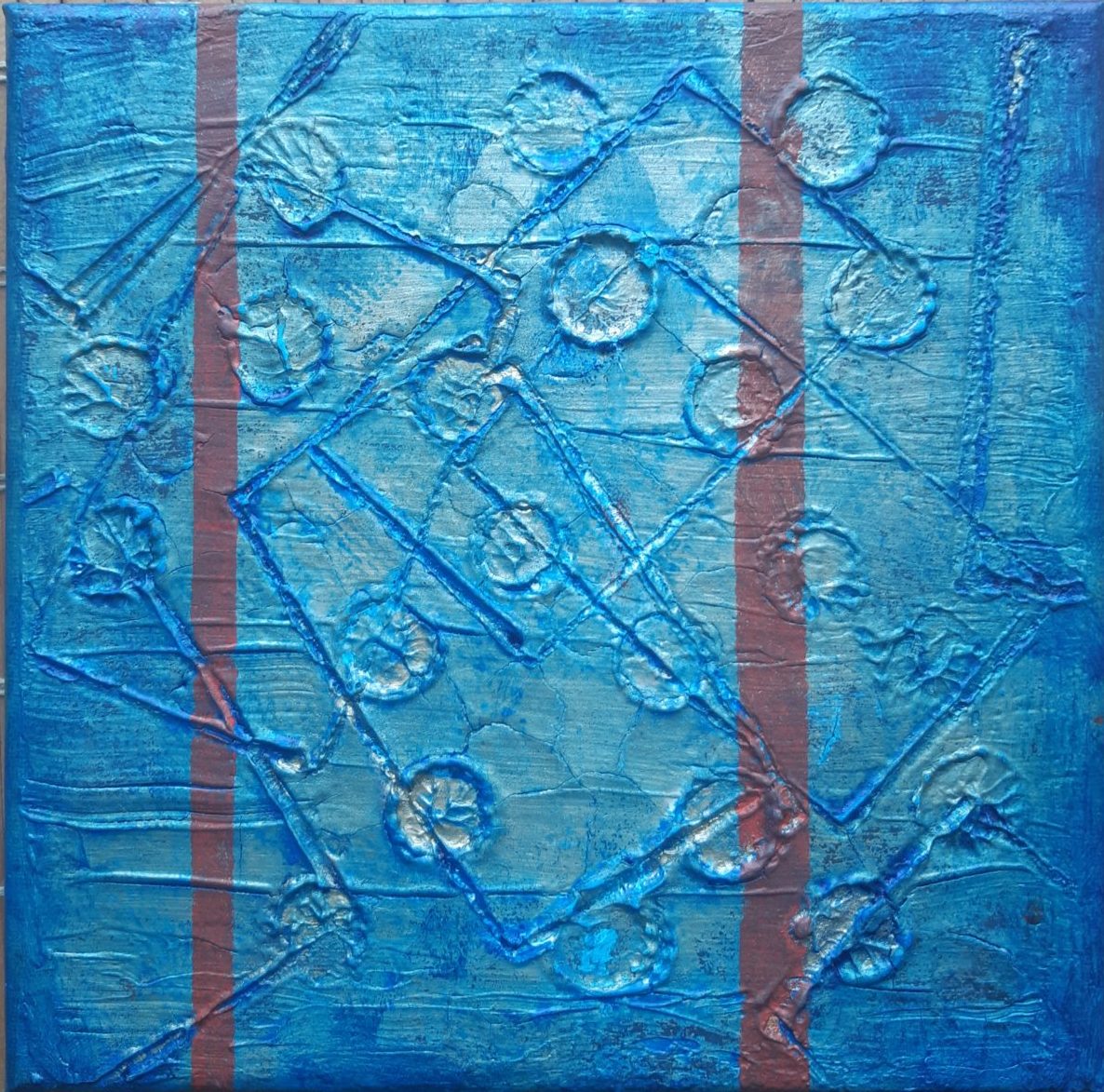 Een globale impressie van het schilderij "2 lines" 20x20cm.