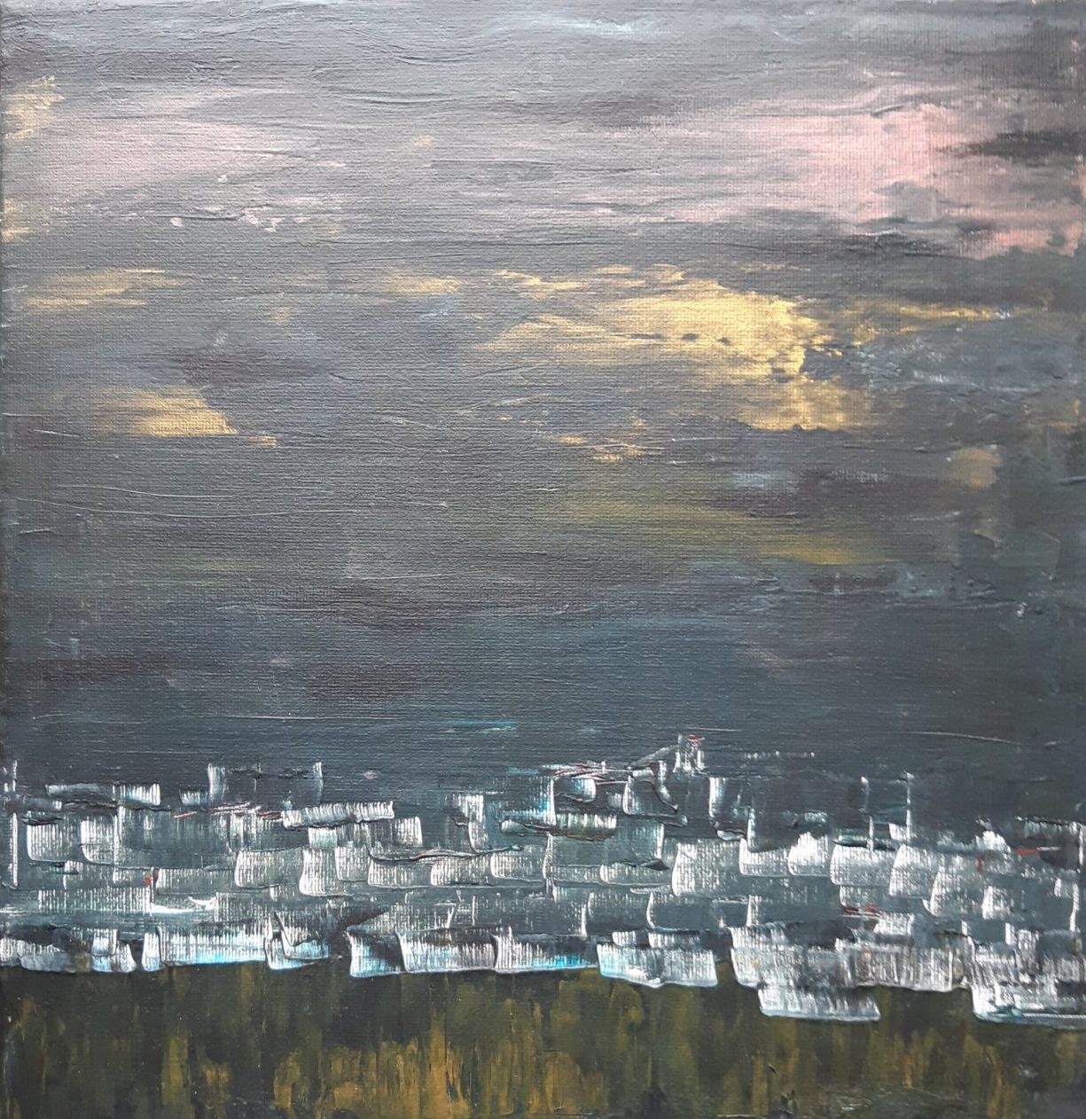 Een globale impressie van het schilderij "El Pueblo" 30x30cm.