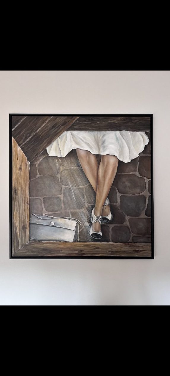 Een globale impressie van het schilderij "Waiting for my friend" 105x105cm.