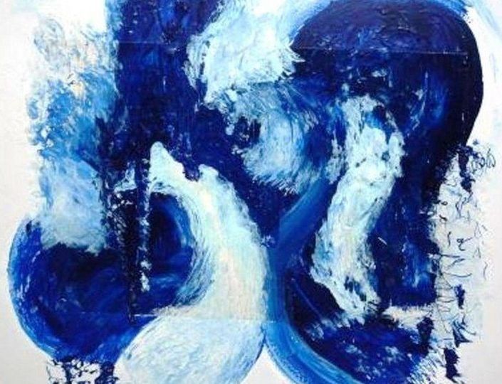 Een globale impressie van het schilderij "Landwave" 100x100cm.