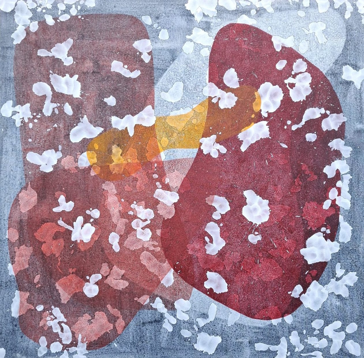 Abstract schilderij uitgevoerd in olieverf en inkt op linnen