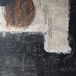 Een globale impressie van het schilderij "Door de tand des tijds" 100x100cm.
