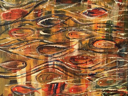 Een globale impressie van het schilderij "Vissen" 200x300cm.