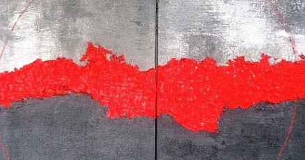 Een globale impressie van het schilderij "Pieces" 200x100cm.
